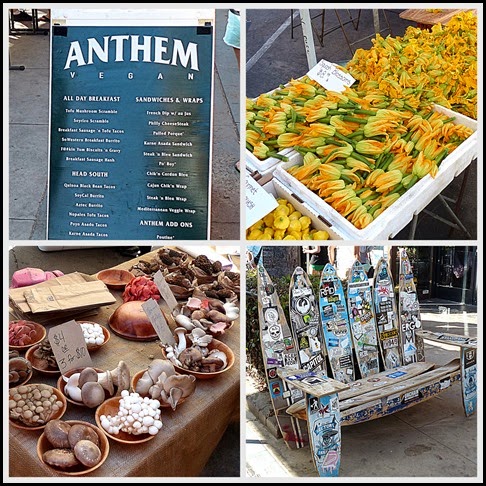 Yesterday afternoon Brenda came along with us to the Ocean Beach Farmer’s Market, while Hector stayed home tackling some computer problems. Ocean Beach is a funky little beach community, and that vibe is reflected in the market. There was not a huge selection of produce, but there were all kinds of other things, including lots of prepared foods, much of it vegan, which came as a nice surprise to us.